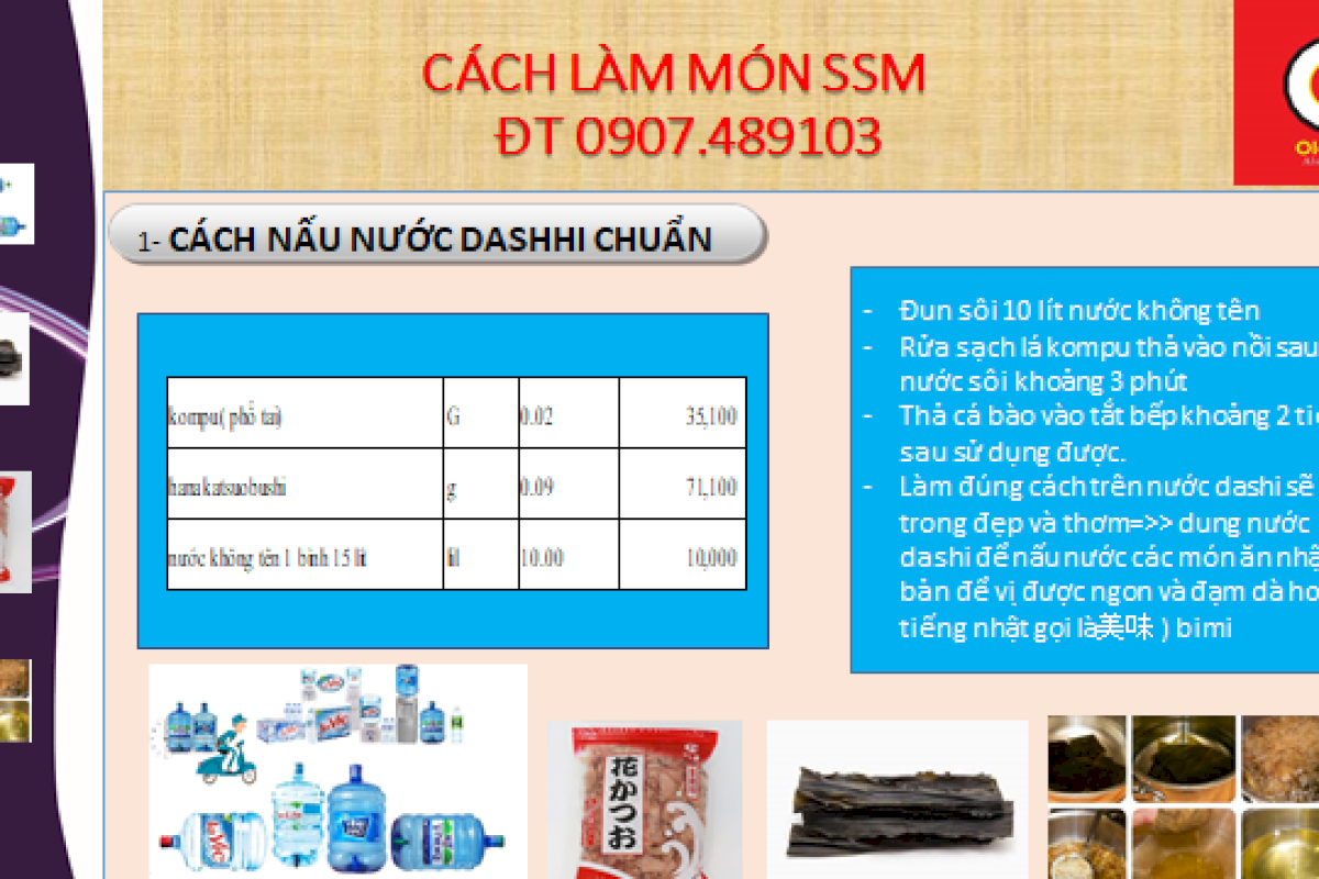 CÁC NẤU NƯỚC DÙNG (DASHI ) NHẬT BẢN✔️ - Đun sôi 10 lít nước. - Rửa sạch lá kompu (20gr) thả vào nồi sau khi nước sôi khoảng 3 phút. - Thả cá bào (100gr) vào tắt bếp khoảng 2 tiếng sau sử dụng được. - Làm đúng cách trên nước dashi sẽ trong đẹp và thơm. Dùng nước dashi để nấu nước các món ăn nhật bản thêm ngon và đậm đà hơn. 👉👉Trên đây, phần chia sẻ về cách nấu nước dùng dashi và công dụng nước dùng dashi. Hy vọng bài viết mang lại lợi ích cho các bạn.Chúc bạn và gia đình có thêm phương pháp bảo vệ sức khỏe tốt