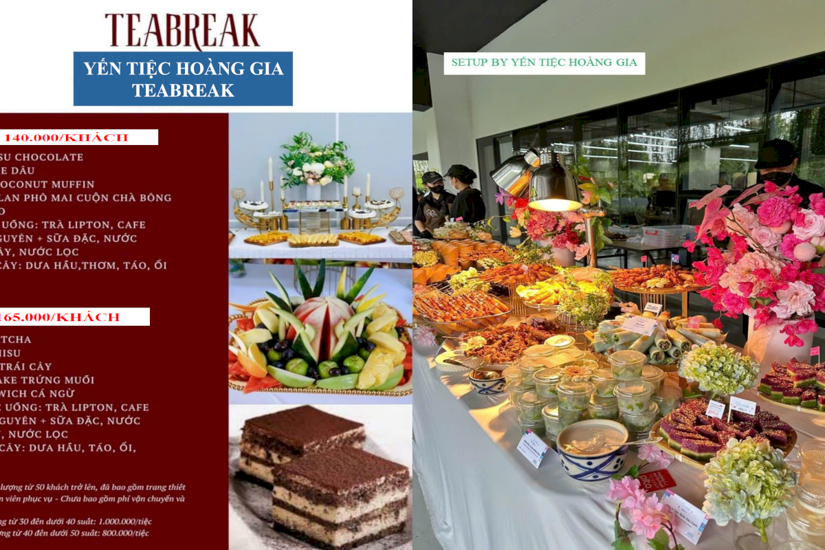 - Giá áp dụng: Dành cho số lượng từ 50 khách trở lên, đã bao gồm trang thiết bị, dụng cụ và nhân viên phục vụ. Chưa bao gồm phí vận chuyển và thuế VAT.