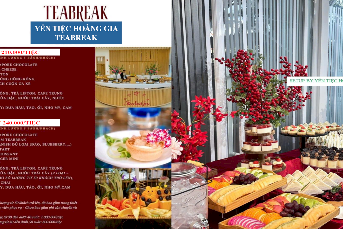 - Giá áp dụng: Dành cho số lượng từ 50 khách trở lên, đã bao gồm trang thiết bị, dụng cụ và nhân viên phục vụ. Chưa bao gồm phí vận chuyển và thuế VAT.